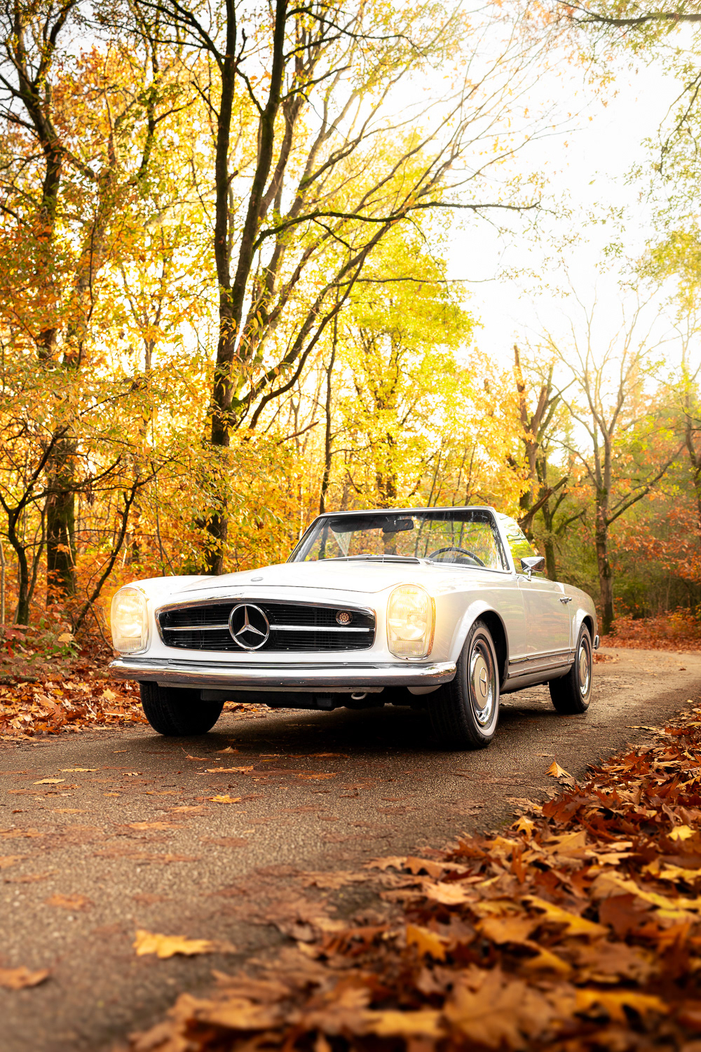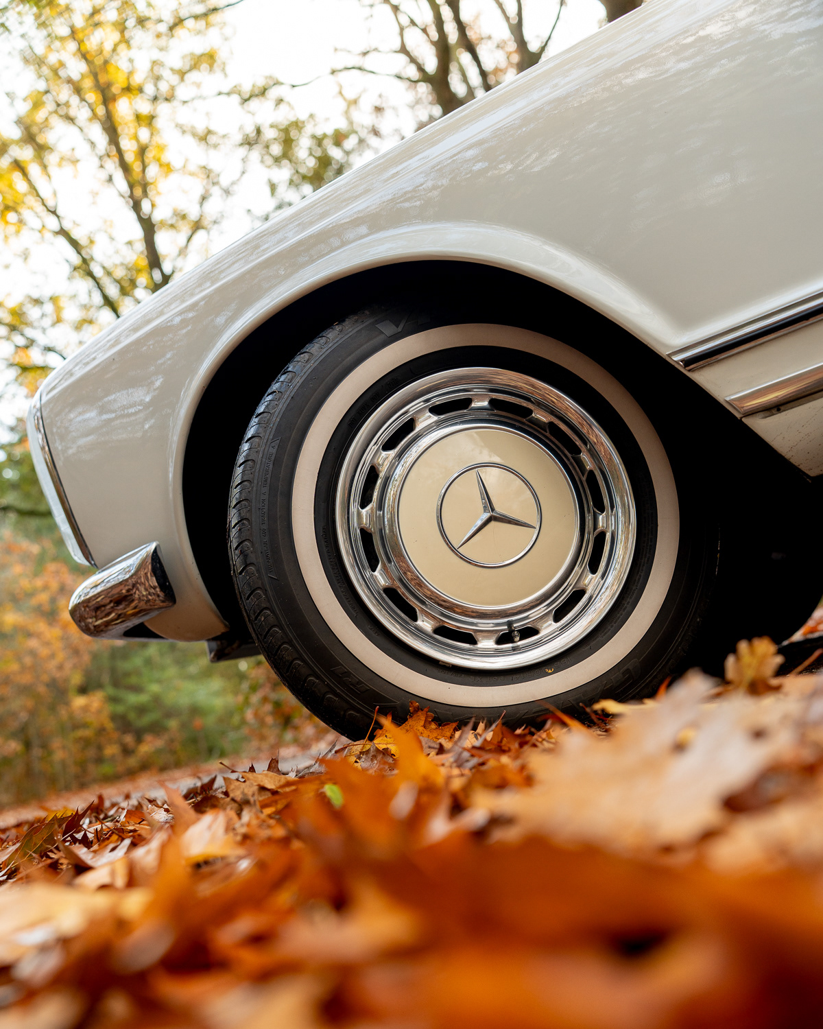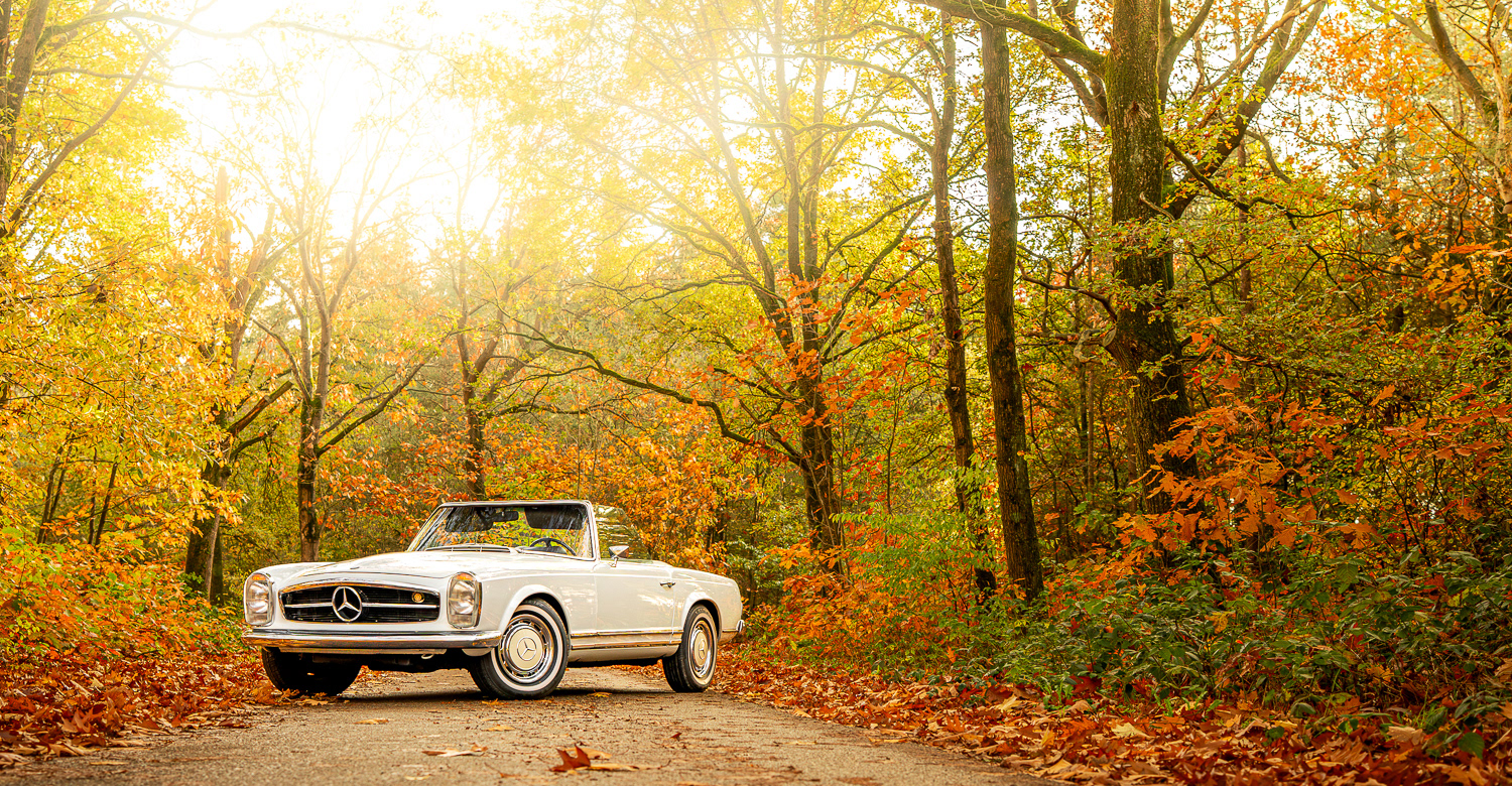 At my internship at Automotive Auctions in Boxmeer, I was asked to shoot a 1969 Mercedes-Benz 280Sl Pagode at location for the auctions, the old Mercedes-Benz style, combined with the sand white paint and the crème rim caps, it pertfectly blends in with the amazing autumn colours the trees provided me!