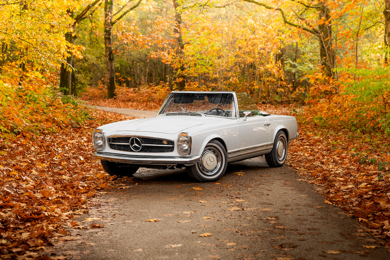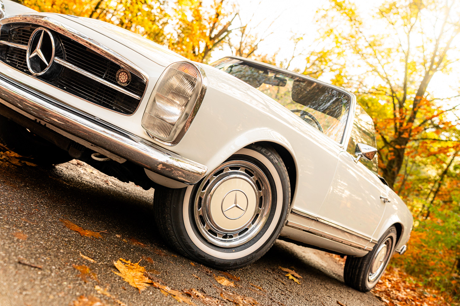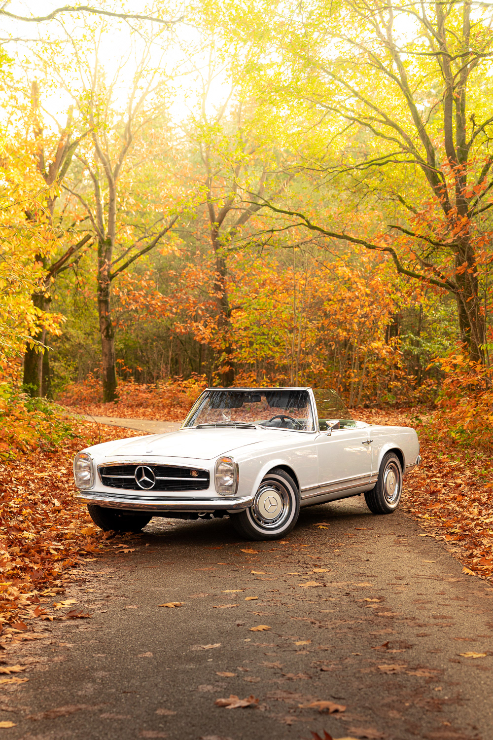 At my internship at Automotive Auctions in Boxmeer, I was asked to shoot a 1969 Mercedes-Benz 280Sl Pagode at location for the auctions, the old Mercedes-Benz style, combined with the sand white paint and the crème rim caps, it pertfectly blends in with the amazing autumn colours the trees provided me!